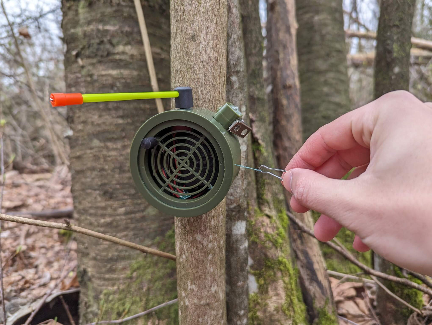 The PackAlarm can be strung between trees, shrubs, rocks, or weeds. It can operate in the mountains, desert, or tundra landscape and is able to withstand the rugged conditions you find yourself in.